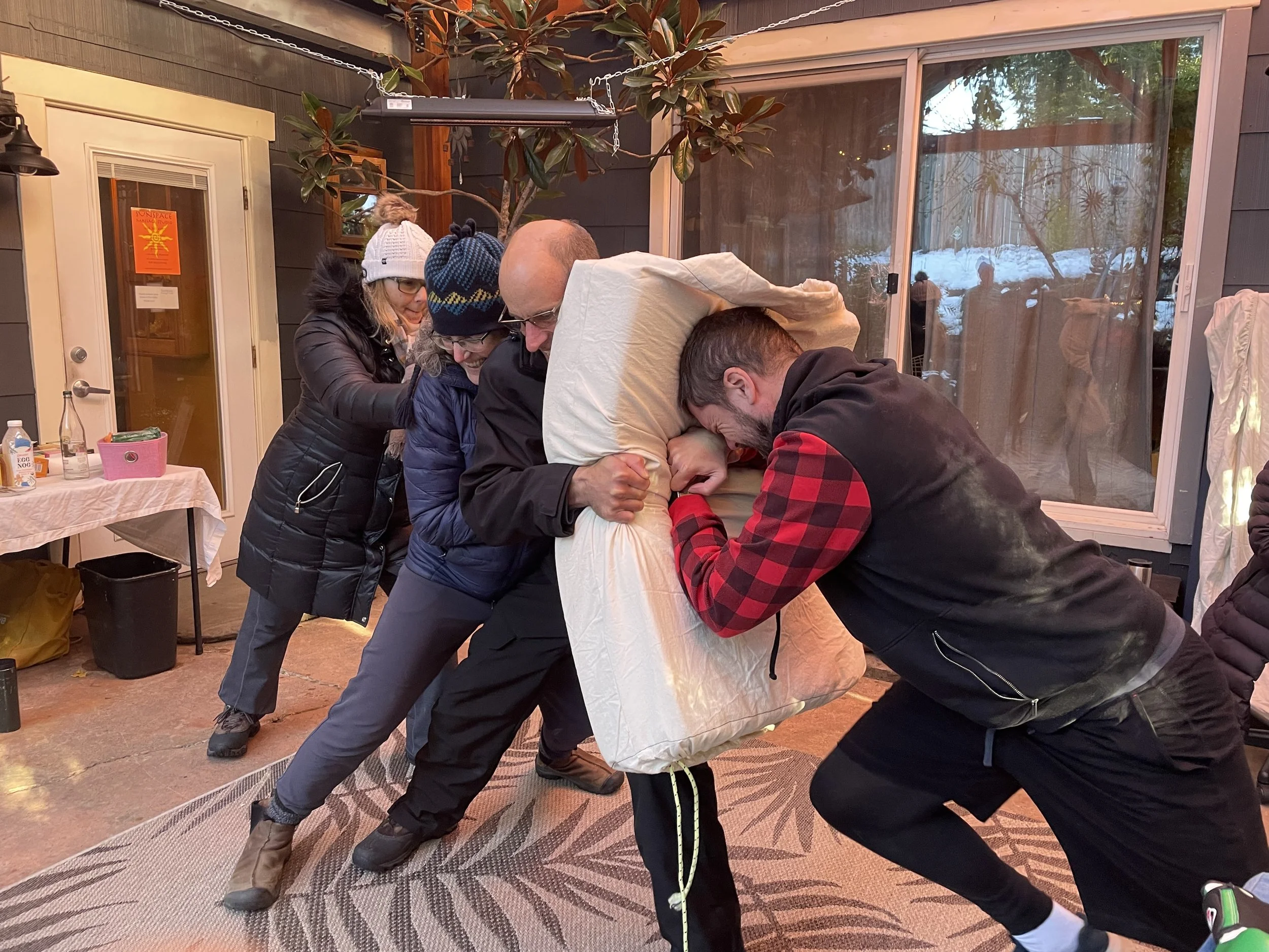 If there’s been an upside to the pandemic, it’s been the resulting discovery that being outdoors not only solves a lot of virus transmission issues, but that it also fosters aliveness and vitality in people. While some of the work happens inside, the majority of group work takes place under a beautiful sheltered pavilion that keeps people dry during any precipitation. Heaters and a natural gas fire bowl help provide warmth from the chill. The fresh air oxygenates and enlivens the experience, and a waterfall provides sound privacy. We will move, use our voices, and dance. Doing all of this outdoors is such a glorious treat when so much of our lives during the Fall, Winter, and Spring are spent indoors in the PNW.